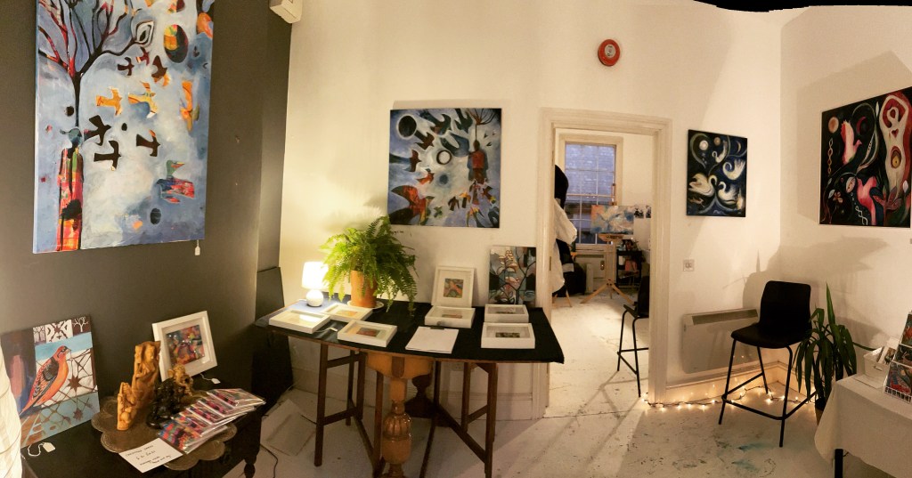 Clare’s studio is at Maker’s Dozen, part of Wolverhampton City Council’s Art Gallery complex- it’s a space for her to make larger work, think and write for her arts based PhD. She is working in the field of art and meditation with an emphasis on Eastern based philosophy and practices.