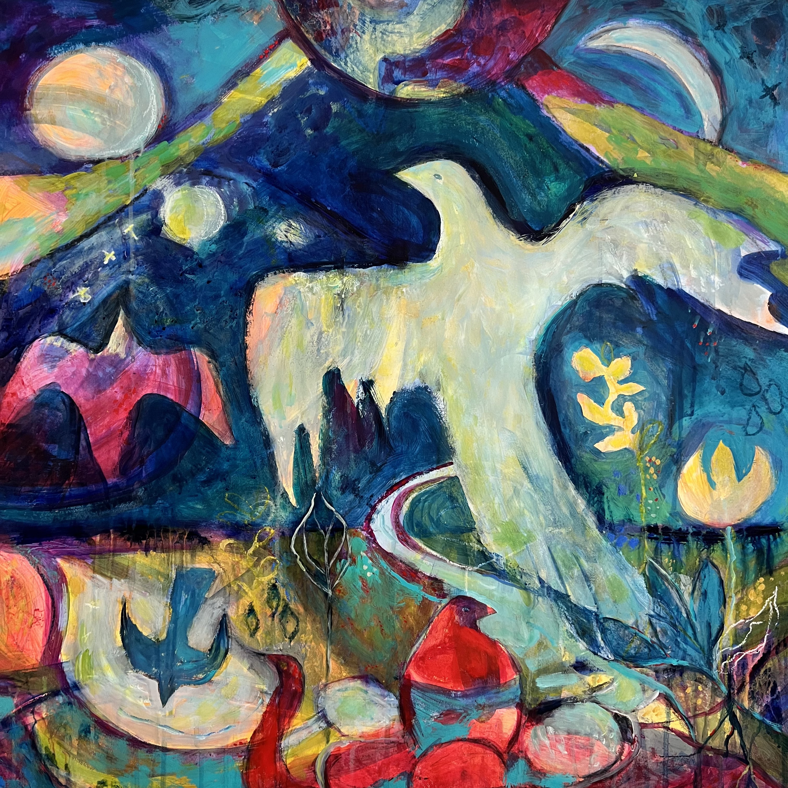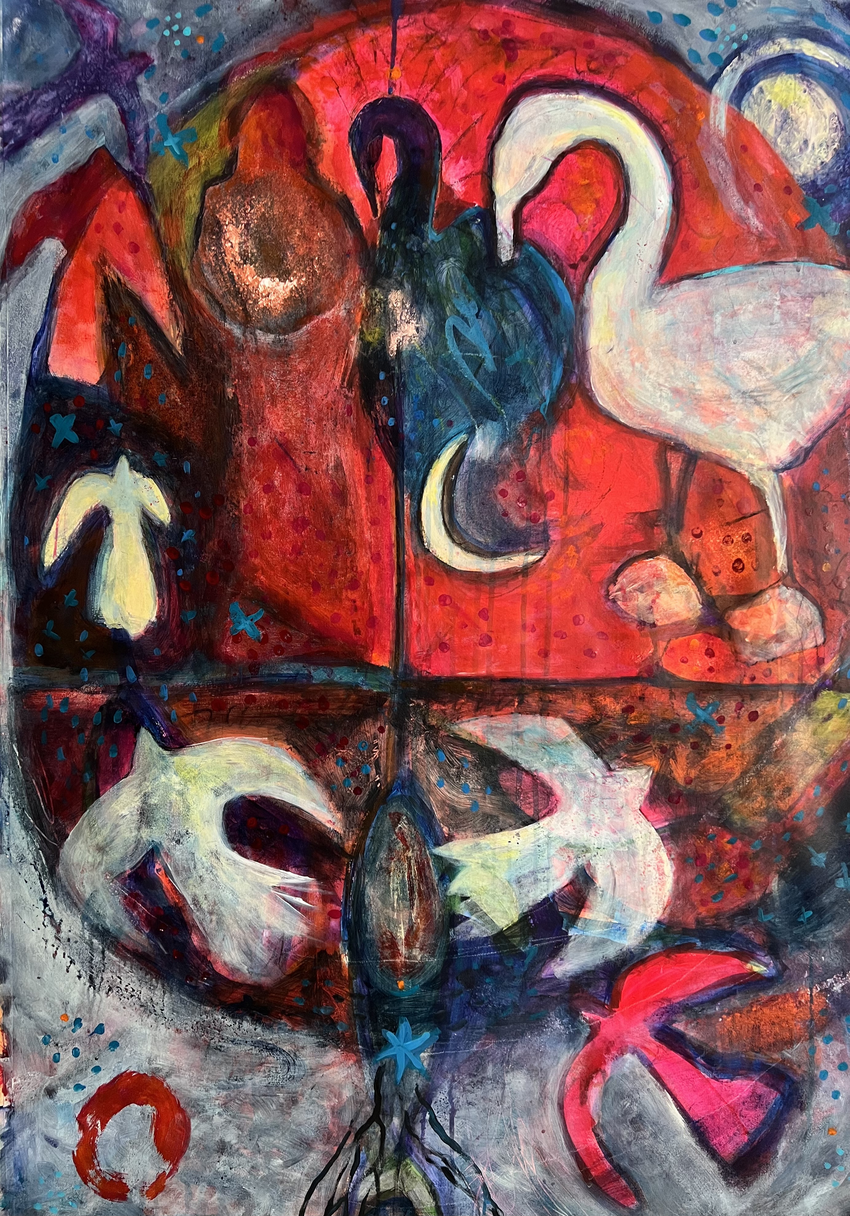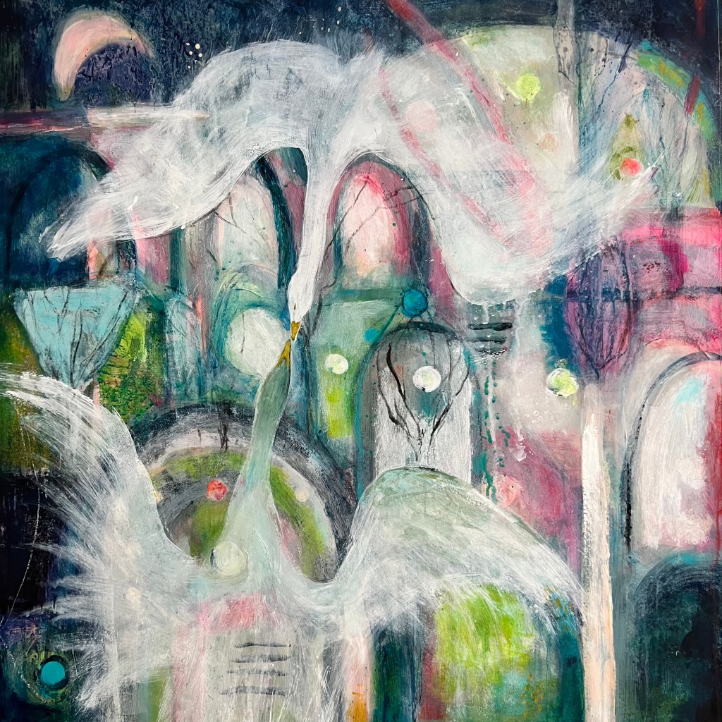 Clare Wassermann has been working with the symbolism of birds in her paintings as part of an ongoing investigation into the concept of liberation and alchemical transformation towards internal freedom.
