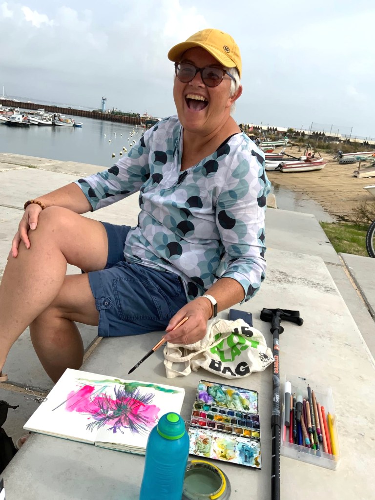 In around 2016 I met Mary Price (of Artist in the Shed on Instagram) on an art workshop in Brighton, tutored by the Australian artist Tracey Verdugo when she was on a world tour. Mary was sitting next to me during the weekend and over a Saturday night curry we made ourselves into friends, but only had an online friendship subsequently over the years, until just last year when we found ourselves in Olhǎo, Portugal at the same time. We spent a couple of happy days then out sketching together and drinking vinho verde of course!