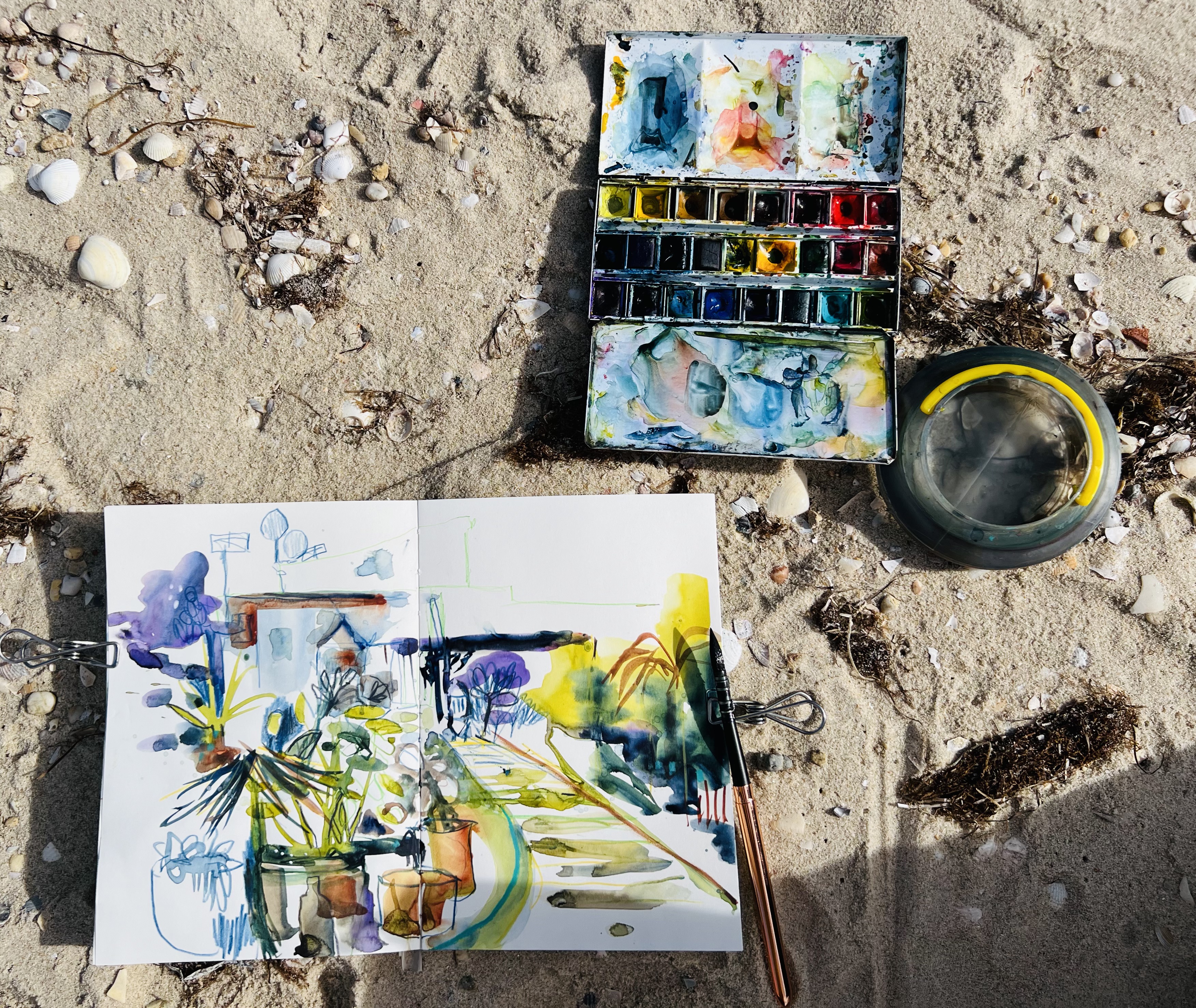 It’s all about expressing yourself in paint in sketchbooks and on paper – beginners and more experienced are very welcome.